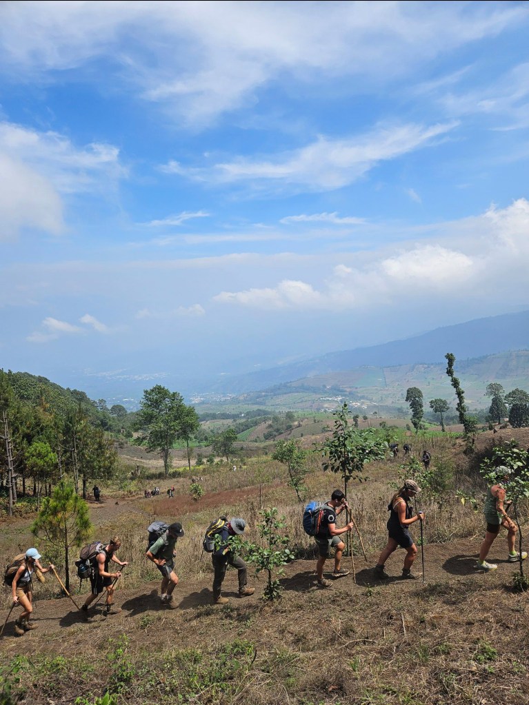 Am Nachmittag trafen wir uns mit der Gruppe und dem Guide in Antigua. Das Meeting ist freiwillig, ich würde aber empfehlen teilzunehmen. Der Guide erklärte uns, was am die kommenden zwei Tage erwarten wird und welche Ausrüstung wir benötigen. Da es oben recht kalt werden kann, konnten wir vor Ort warme Kleidung, aber auch Wanderrucksäcke, Kopflampen und Wanderschuhe ausleihen. Alles war vorbereitet, und wir waren bereit für die Wanderung am kommenden Morgen.