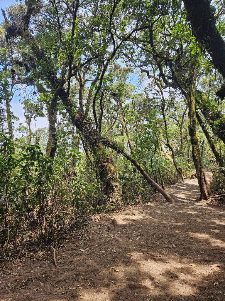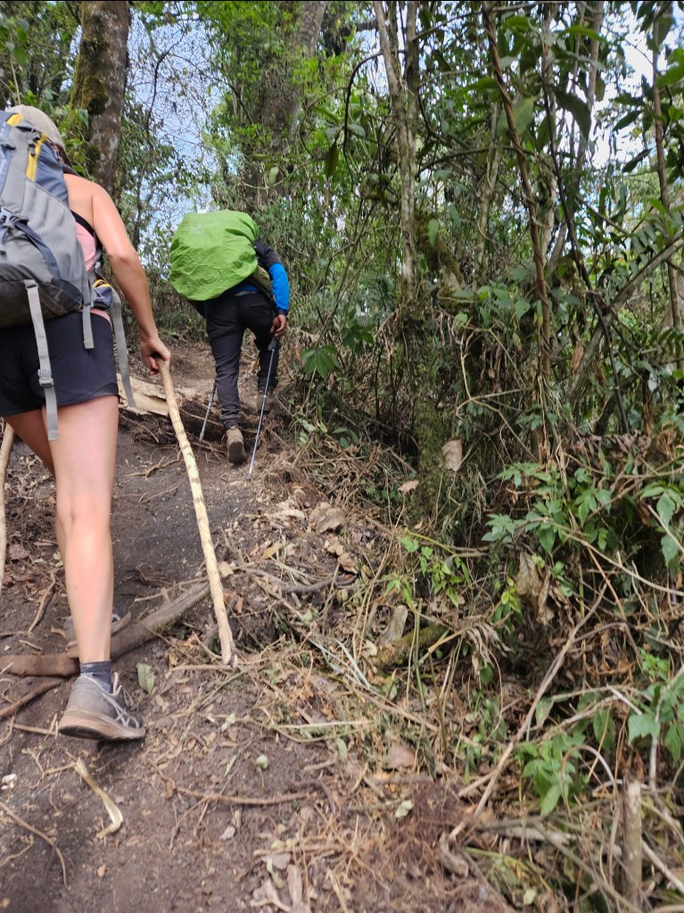 Im Verlauf der Wanderung durchquerten wir vier verschiedene Vegetationszonen. Zunächst passierten wir Farmland, wo Mais angebaut wird, und tauchten dann in den Nebelwald ein. Immer wieder legten wir Pausen ein und warteten auf den Rest der Gruppe. Nach fast 1.000 Höhenmetern und einigen Stunden steil bergauf, war es endlich Zeit für Mittag. Wir erhielten vor Abreise ein großes Sandwich, das mehr als ausreichend war. Mit vollem Magen blieb noch genügend Zeit die Beine etwas hochzulegen. Hier wurde es aber auch schon merklich kälter, also wurden die ersten Lagen warme Sachen angezogen.