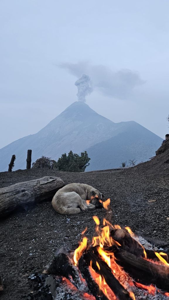 Nach etwa fünf Stunden Wandern erreichten wir schließlich das Basecamp auf 3.550m. Von dort hatten wir einen unglaublichen Blick auf den aktiven Vulkan Fuego.