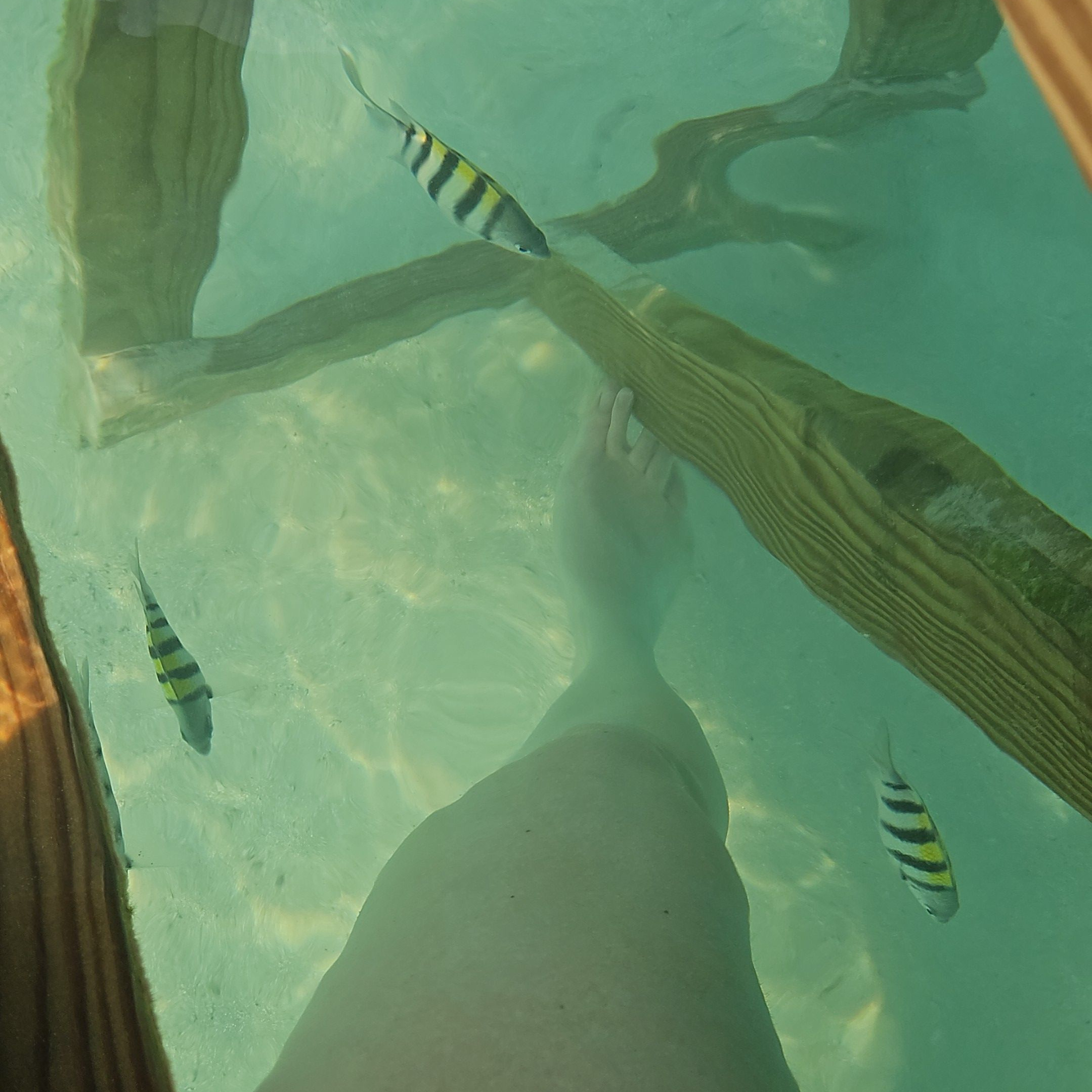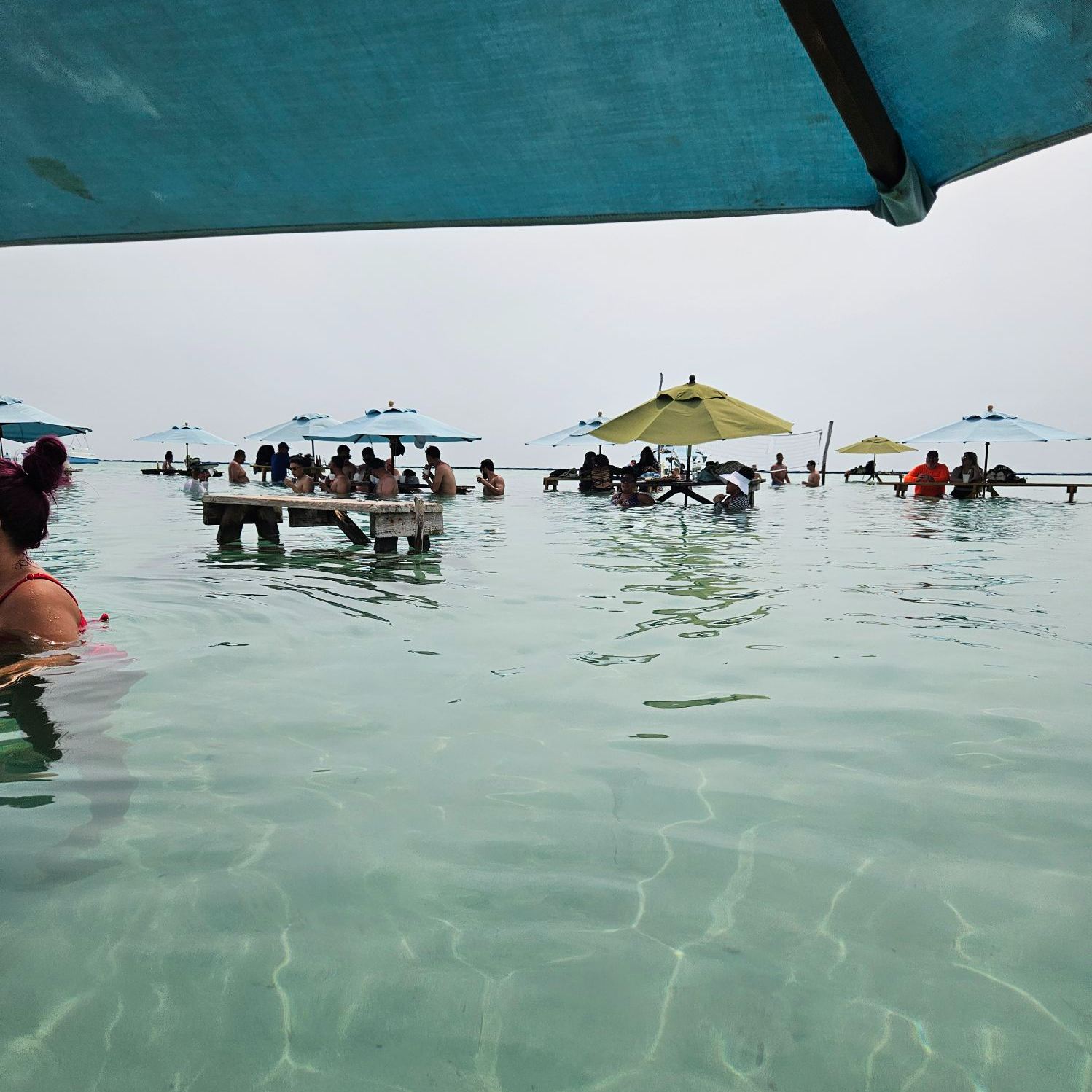 Die Bilder der Bar lügen nicht: glasklares Wasser, Fische, die um die Beine schwimmen, und ein Kellner, der regelmäßig im Wasser vorbeikommt und Getränke oder Essen bringt. Wir haben es uns mit leckeren Tacos und dem ein oder anderen Bier im Wasser gutgehen lassen.